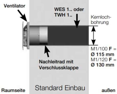 Ausführung | Standardmodell mit zwei Drehzahlstufen | Wie M1/100, mit codierbarem Nachlauf- und Intervallbetrieb * | Wie M1/100, mit Freuchteverlaufssteuerung *, **** | Wie M1/100, mit Präsenzmelder * |