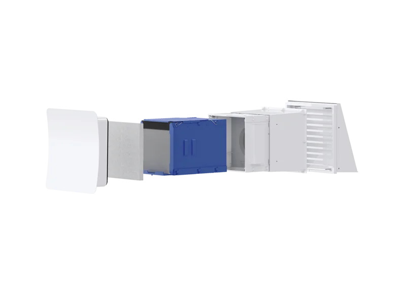 - Robuste Konstruktion: Mit einem effizienten Wärmeübertrager aus Aluminium und schlagregendichter Außenblende für Langlebigkeit und Schutz.