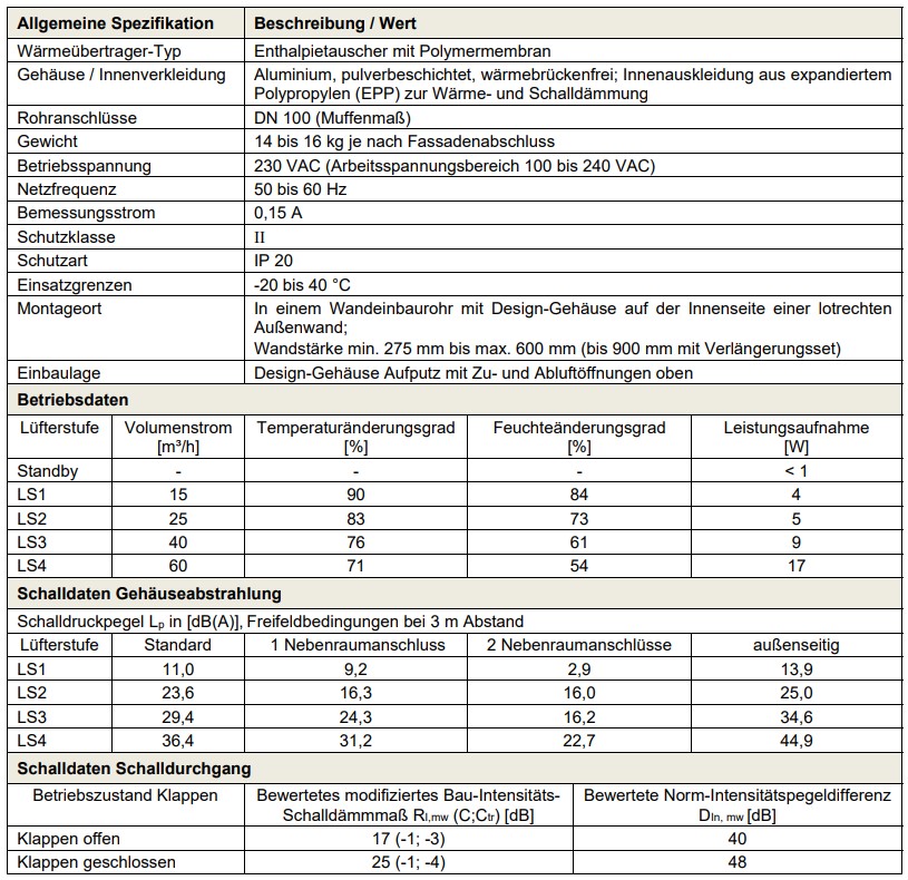 - Technische Spezifikationen Zehnder ComfoSpot 50