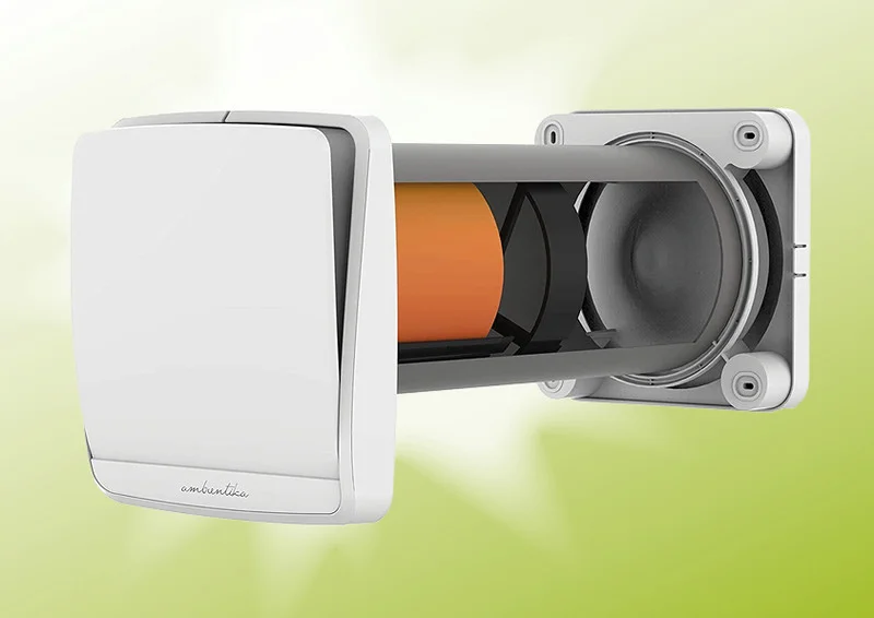 Südwind Ambientika Advanced+ Komplettset - Effiziente dezentrale WohnraumlüftungErleben Sie optimale Raumluftqualität mit dem Südwind Ambientika Advanced+ Komplettset – für ein gesünderes und komfortableres Zuhause.Das Südwind Ambientika Advanced+ Komplettset ist eine hochmoderne dezentrale Wohnraumlüftung mit integrierter Wärmerückgewinnung. Es sorgt für kontinuierlichen Frischluftaustausch, minimiert Energieverluste und schafft ein optimales Raumklima. Mit fortschrittlichen Sensoren und Smart Home Kompatibilität ist dieses System die ideale Lösung für effiziente und komfortable Belüftung in Wohn- und öffentlichen Räumen, selbst im Badezimmer.Ihre Vorteile im Überblick:Hocheffiziente Wärmerückgewinnung: Der Keramik-Wärmetauscher erreicht einen Wirkungsgrad von bis zu 93%, was Heizkosten spürbar senkt.Integrierte Smart Home Funktionen: Nahtlose Integration in Loxone und KNX Systeme für zentrale Steuerung und maximalen Komfort.Intelligente Sensorik: Mit Feuchtigkeits- und Dämmersensor für vollautomatischen Betrieb und eine auf Ihre Bedürfnisse abgestimmte Luftqualität.Einfache Installation und Wartung: Das dezentrale System benötigt keine komplexen Kanäle, ist schnell montiert und Filter sowie Wärmetauscher sind leicht zu reinigen.Flüsterleiser und Energiesparender Betrieb: Die geringe Geräuschentwicklung und der bürstenlose Motor garantieren einen diskreten und effizienten Einsatz.Flexible Systemerweiterung: Verbinden Sie bis zu 15 Geräte per Kabel für eine umfassende und koordinierte Belüftungslösung in größeren Gebäuden.Ideal für Nassräume: Speziell geeignet für den Einsatz im Badezimmer, da kein Kondenswasserablauf notwendig ist.Effiziente WärmerückgewinnungDas Herzstück des Ambientika Advanced+ ist der innovative Keramik-Wärmetauscher, der bis zu 93% der Wärme aus der Abluft zurückgewinnt.Dies führt zu einer erheblichen Reduzierung der Heizkosten, da die frische Zuluft bereits vorgewärmt in den Raum gelangt.Intelligente Sensorik für optimales KlimaDas Gerät verfügt über integrierte Feuchtigkeits- und Dämmersensoren, die den Betrieb automatisch an die Umgebungsbedingungen anpassen.Dies gewährleistet jederzeit ein gesundes Raumklima, verhindert Schimmelbildung und optimiert den Energieverbrauch, ohne dass Sie manuell eingreifen müssen.Nahtlose Smart Home IntegrationDank des RS485-Busanschlusses ist das Ambientika Advanced+ kabelgebunden und kann problemlos in Smart Home Systeme wie Loxone und KNX integriert werden.Sie erhalten maximale Flexibilität bei der Steuerung und können Ihr Lüftungssystem zentral über Ihre bestehenden Smart Home Schnittstellen bedienen.Vielseitige Betriebsmodi und SteuerungWählen Sie zwischen unterschiedlichen Einstellungen und Programmen, um den Luftaustausch präzise an Ihre Bedürfnisse anzupassen.Eine mitgelieferte Fernbedienung bietet zusätzlichen Komfort bei der Bedienung.Technische SpezifikationenParameterWertHinweisArtikelnameSüdwind Ambientika Advanced+KomplettsetEinbauortWandEinbauartAufputz / UnterputzEinbaulageFast horizontalMit 1-2° Gefälle nach außenMaterialKunststoff (PP für Rohr)Hochqualitative Materialien, Polypropylen (PP) lebensmittelecht für PVC RohrKlappeAutomatischNennweite100 mmRohrdurchmesserStromversorgung230 V / 50 HzSchutzklasseIP44Schallschutz gegen Außenlärm43 (-2;-4) dBBewertete Normschallpegeldifferenz Dn,e,w (C;Ctr)MotorElektronisch gesteuertBürstenlos (Brushless)ParameterWertBesonderheitFördervolumen10, 20, 30 m³/h (regelbar)Max. 60 m³/hWirkungsgrad Wärmerückgewinnungbis zu 93 %Keramischer WärmetauscherNennleistung3,2 - 6,7 W(Angaben variieren zw. Ø 6,7W und 3,2-5,9W/3,9-6,7W)Schallpegel (3m Abstand)20 - 30 dB(A)(20 dB(A) min, 24-30 dB(A) max)Fördermitteltemperatur (IMax)40 °CBetriebstemperatur-20 °C bis +50 °CAbmessung / BereichWertHinweisWandstärke (min.)250 mmMaximale Wandstärke 400-500 mmWandhülse Länge500 mmKürzbarMax. Rohrlänge (Verlängerung)2,5 MeterInkl. einem 90°-KnickEmpf. Montagehöhe2,3 mUnterkanteBreite (Außenwandbefestigung inkl. Wetterhaube)212 mmBreite (Innenwandbefestigung inkl. Design Abdeckhaube)233 mmHöhe (Außenwandbefestigung inkl. Wetterhaube)212 mmHöhe (Innenwandbefestigung inkl. Wetterhaube)250 mmTiefe (Außenwandbefestigung inkl. Wetterhaube)54 mmTiefe (Innenwandbefestigung inkl. Wetterhaube)42 mmParameterWertHinweisAnzahl Filter2Getrennt für Luftein- und -austrittFilterklasseG3Nach EN 779Einsatzbereiche & AnwendungsszenarienDas Südwind Ambientika Advanced+ Komplettset ist vielseitig einsetzbar und eignet sich hervorragend für die Belüftung von Wohnräumen sowie öffentlich genutzten Räumen.Besonders im Badezimmer, wo Feuchtigkeitsregulierung entscheidend ist und kein Kondenswasserablauf benötigt wird, spielt es seine Stärken aus.Es ist die ideale Lösung für Einzelraumlösungen und kann auch als einfacher Ersatz für bestehende Entlüftungssysteme genutzt werden.Hersteller & QualitätDie Südwind GmbH steht für hochwertige dezentrale Lüftungssysteme.Das Ambientika Advanced+ Komplettset wird aus stabilen, hochqualitativen Materialien gefertigt und überzeugt durch sein ansprechendes Design. Dies garantiert Langlebigkeit und zuverlässige Funktion für Ihr Zuhause oder Büro.Investieren Sie jetzt in frische, gesunde Luft und sparen Sie gleichzeitig Heizkosten!Das Südwind Ambientika Advanced+ Komplettset bietet Ihnen Komfort, Effizienz und ein optimales Raumklima. Kontaktieren Sie uns für eine individuelle Beratung und finden Sie die perfekte Lüftungslösung für Ihre Bedürfnisse.