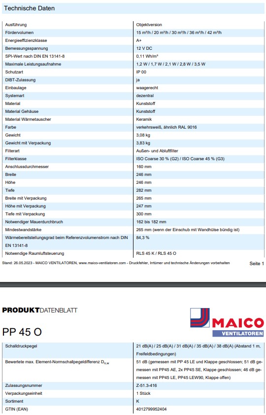 Unsere Maico-Bestseller unter den dezentralen Lüftungen: PP 45 O / K / RC